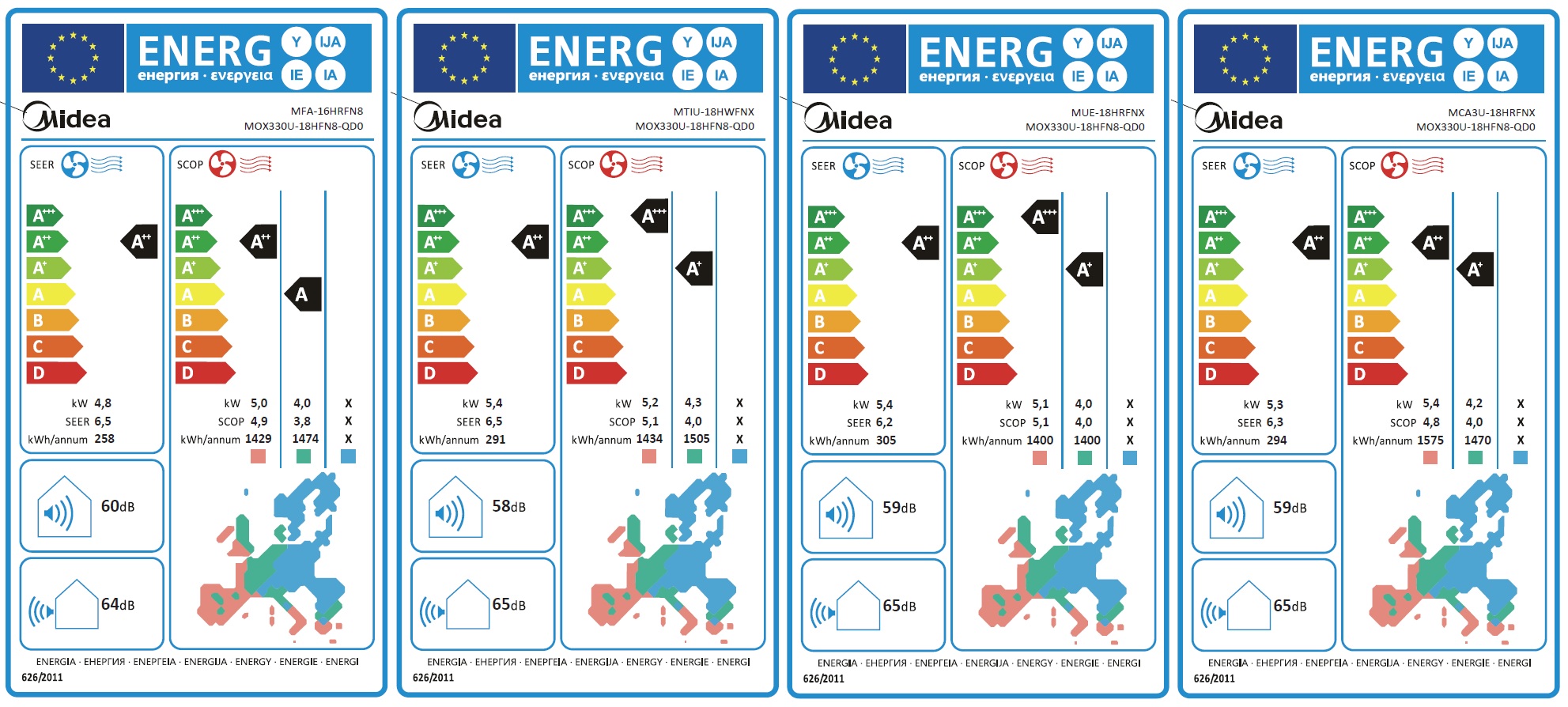 Midea MFA-16HRFN8, MTIU-18HWFNX, MUE-18HRFNX, MCA3U-18HRFNX, MOX330U-18HFN8-QD0_Universal_Energiacímke_ENG